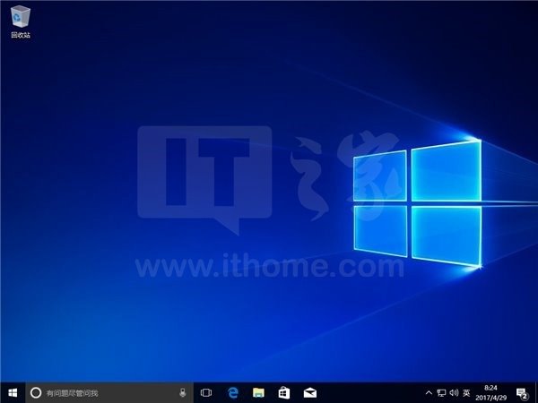 在经过前期的oobe设置后,我们就能看到一张专门为Windows 10 Cloud打造的全新蓝色壁纸,该壁纸于Build 15046开始使用。