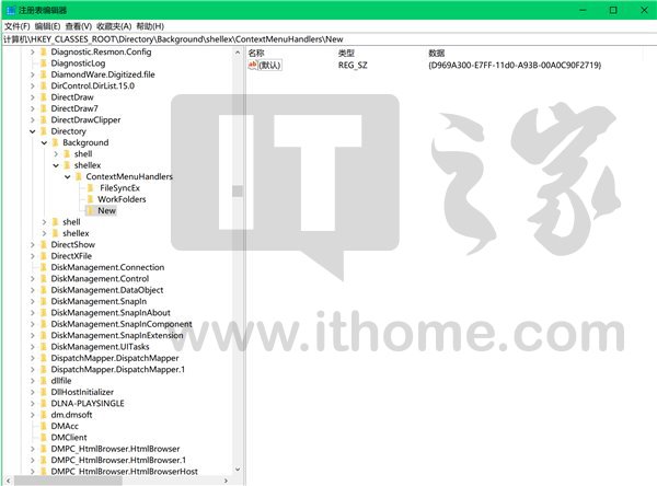3.若ContextMenuHandlers里没有“New”项,新建,并把内部初始值改为{D969A300-E7FF-11d0-A93B-00A0C90F2719}
