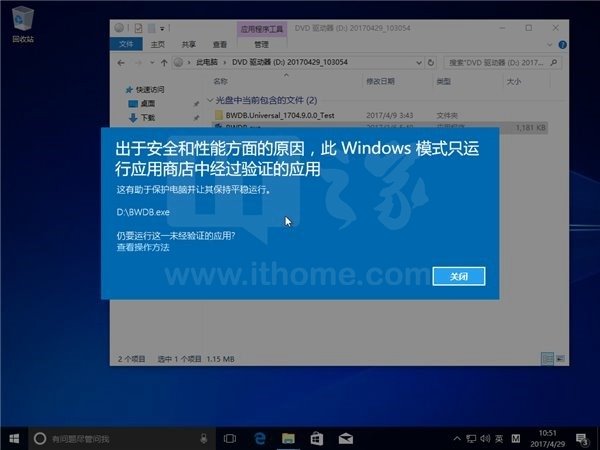 运行第三方Win32应用……Nothing,你当然不能直接运行第三方Win32程序,他会提示你“出于安全和性能方面的原因,此Windows模式只运行应用商店中经过验证的应用。这有助于保护电脑并让其保持平稳运行。”而在15025则提示“你试图安装的应用不是针对这个Windows版本设计的”,从这里就可以得知所谓的“Cloud”可能实为一种Windows 10的限制模式。
