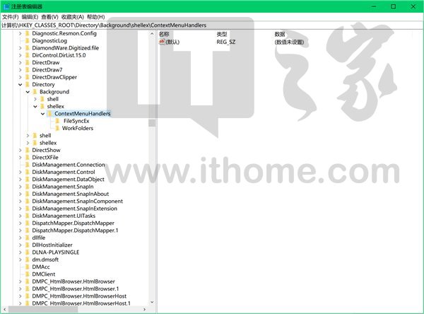2.打开目录:HKEY_CLASSES_ROOT \Directory\Background\shellex\ContextMenuHandlers