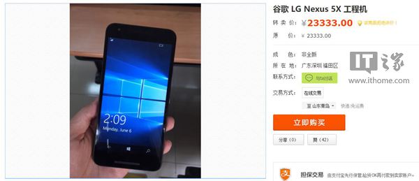 运行Win10 Mobile的Nexus 5X现身闲鱼:可惜不卖